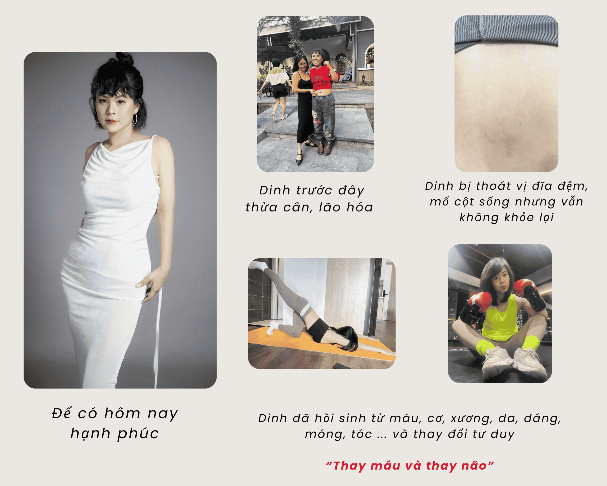 Từ trải nghiệm lột xác ấy, Dinh nhận ra: thuốc hay dao kéo chỉ xử lý ngọn. Muốn thật sự khỏe, phải bắt đầu từ máu – tế bào – hormone – lối sống – tinh thần.